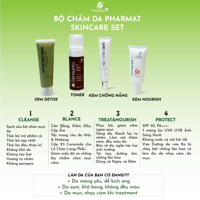 PHARMAT SKINCARE SET – BỘ 4 BƯỚC PHỤC HỒI CHUẨN Y KHOA CHO DA YẾU, DA TREATMENT
